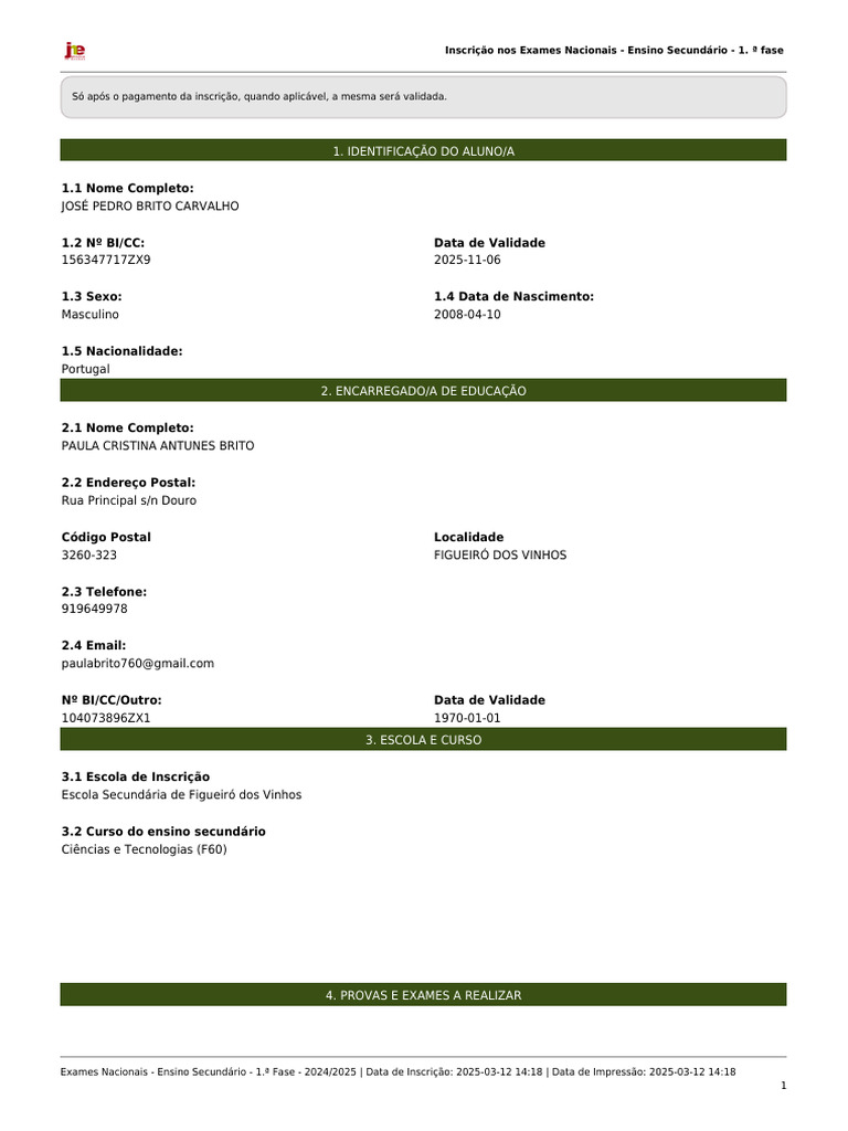 Exames Nacionais - Ensino Secundário - 1.ª Fase - 2024/2025 | Data de Inscrição: 2025-03-12 14:18 | Data de Impressão: 2025-03-12 14:18