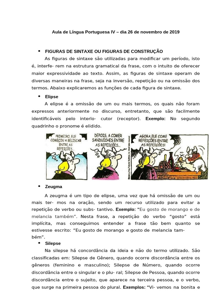 Aula de Língua Portuguesa IV – dia 26 de novembro de 2019