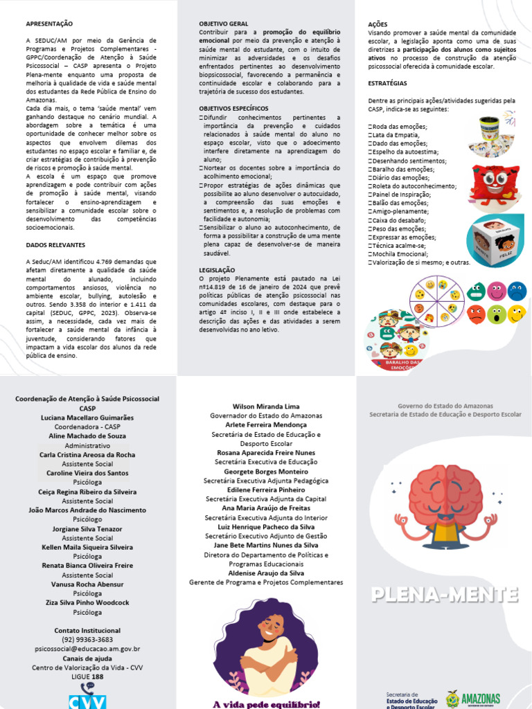 mental do alunado, incluindo O projeto Plenamente está pautado na Lei