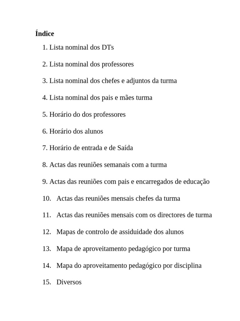 No Nome do Professor Nível académico Turma que dirige Contacto