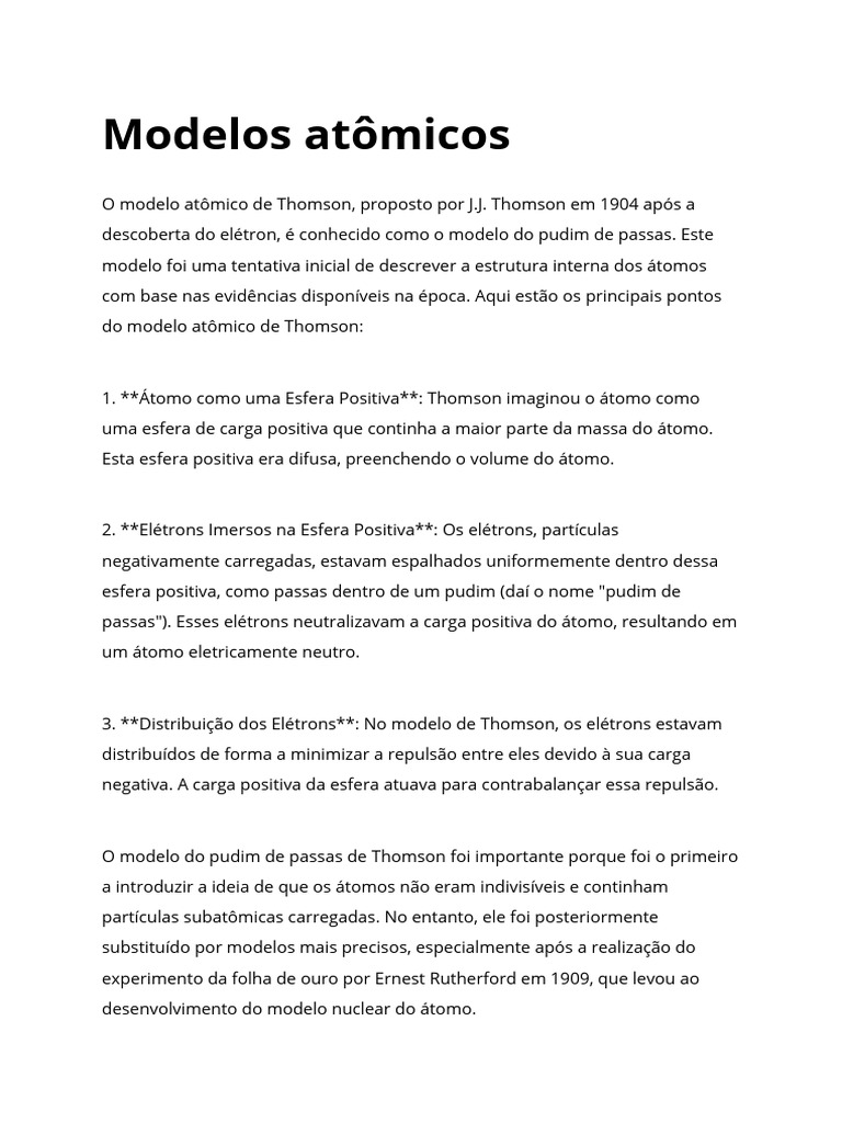 Embora o modelo de Thomson tenha sido superado, ele marcou um avanço