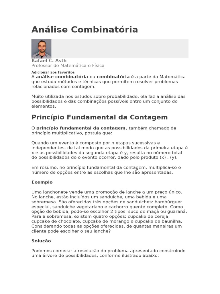 favoráveis e os casos possíveis. Nesta situação, temos apenas um