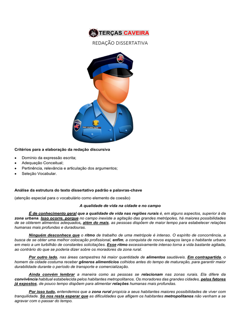 Análise da estrutura do texto dissertativo padrão e palavras-chave