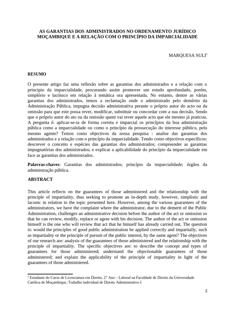 Católica de Moçambique; Trabalho individual de Direito Administrativo I.