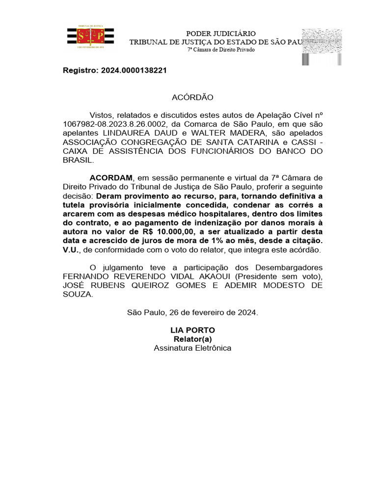 ASSOCIAÇÃO CONGREGAÇÃO DE SANTA CATARINA e CASSI -