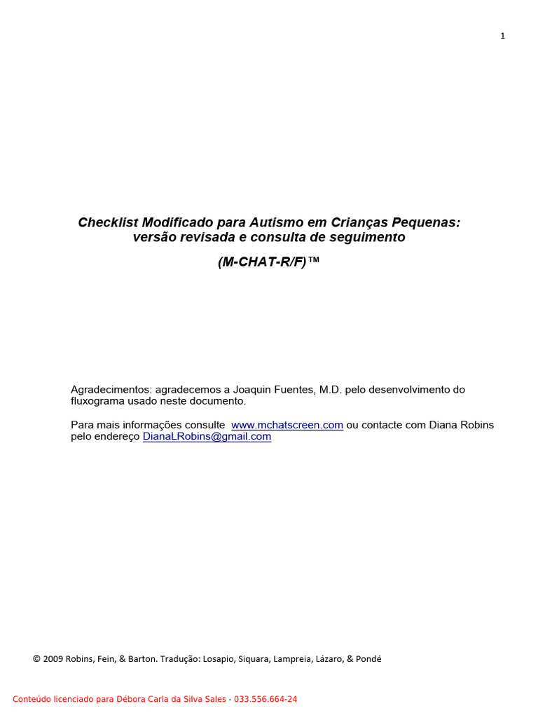 O M-CHAT-R/F é um instrumento protegido pelos direitos autorais e o seu uso deve seguir essas