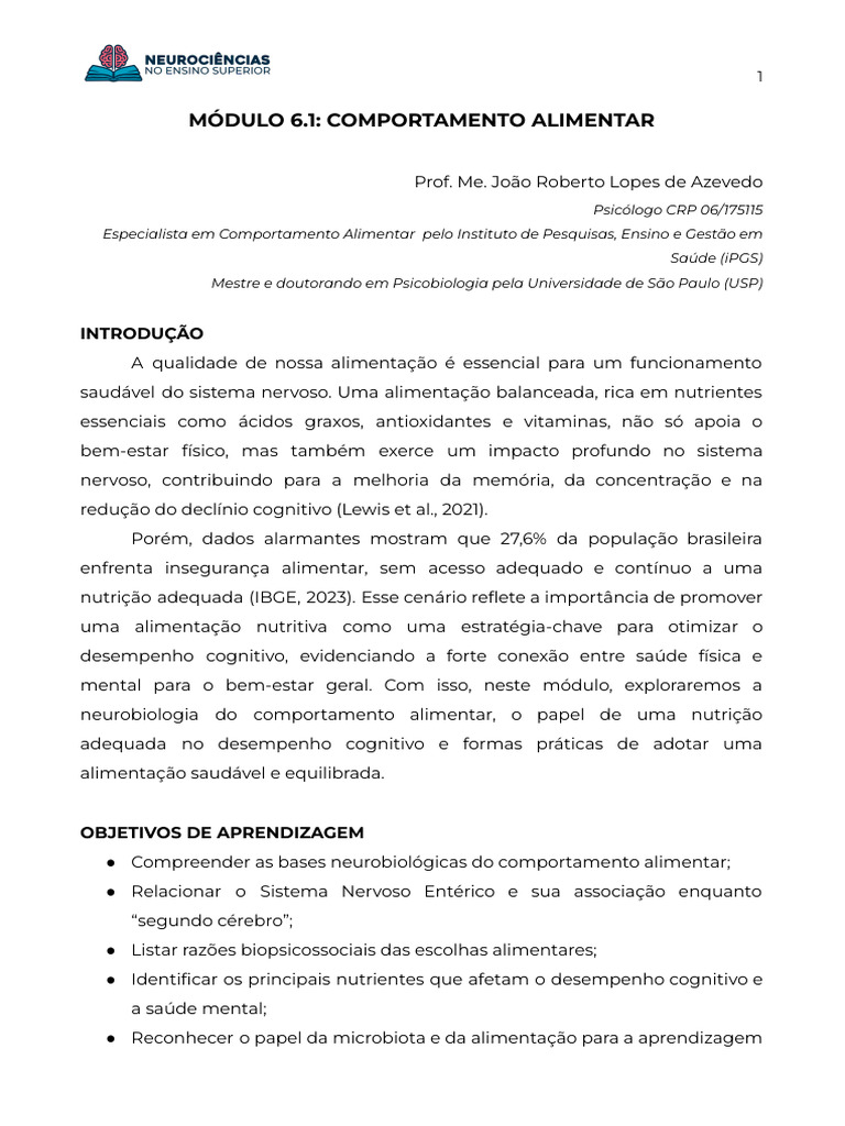 MÓDULO 6.1: COMPORTAMENTO ALIMENTAR