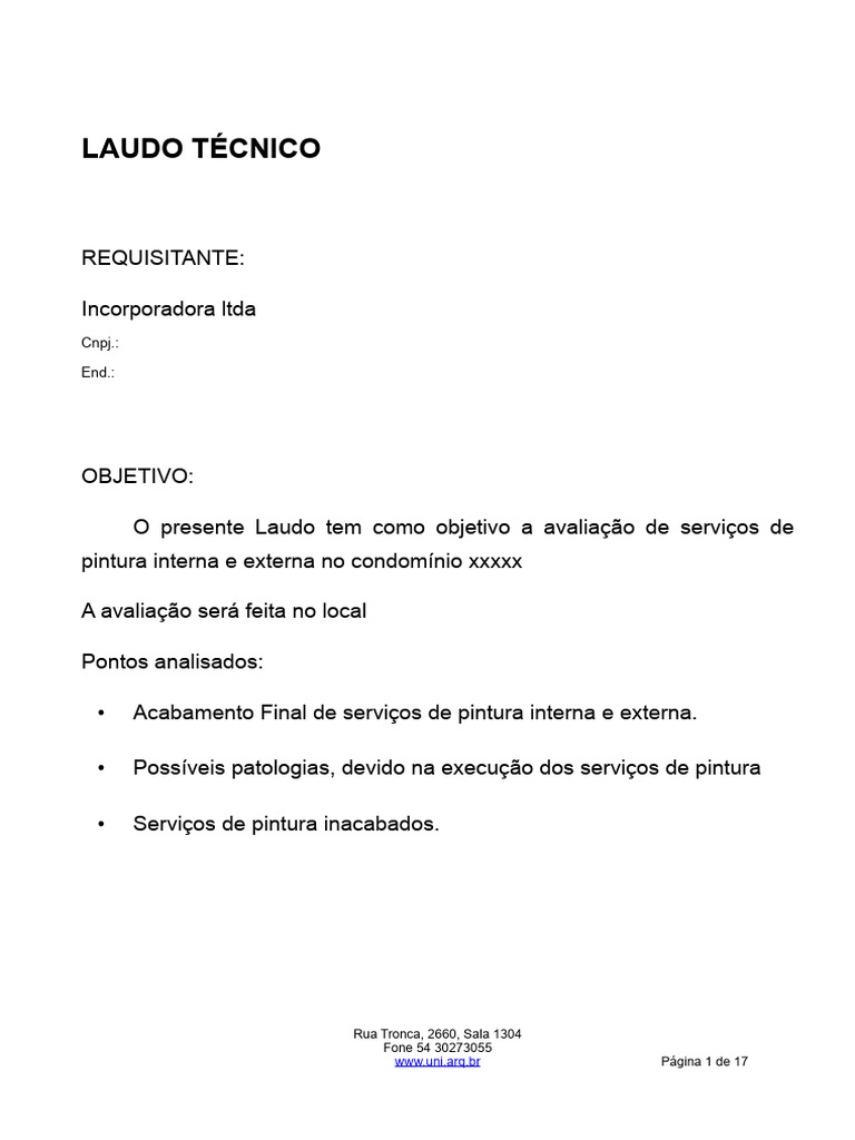 O presente Laudo tem como objetivo a avaliação de serviços de