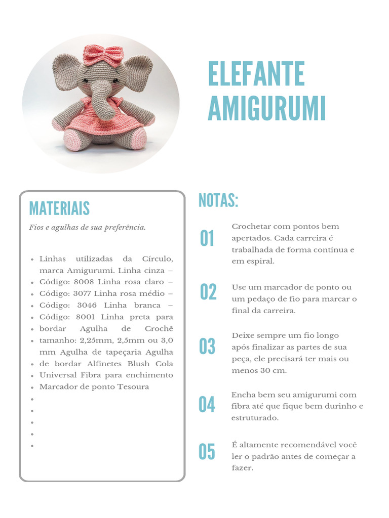 Necessário conhecimento de crochê em espiral (técnica para Amigurumi), e