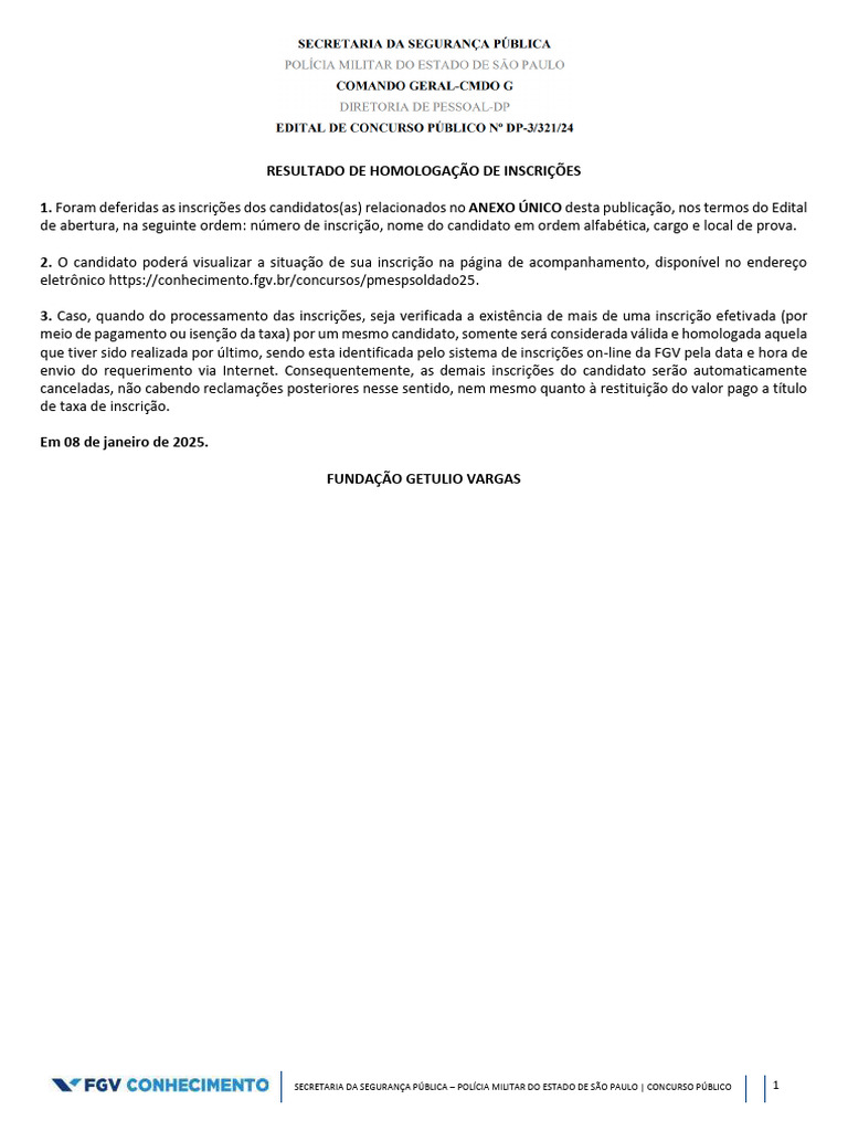 SECRETARIA DA SEGURANÇA PÚBLICA – POLÍCIA MILITAR DO ESTADO DE SÃO PAULO | CONCURSO PÚBLICO 1
