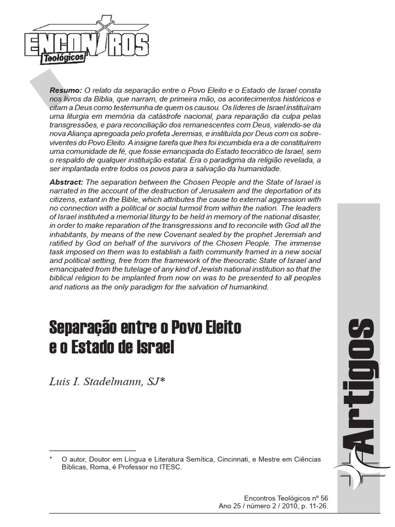 Resumo: O relato da separação entre o Povo Eleito e o Estado de Israel consta
