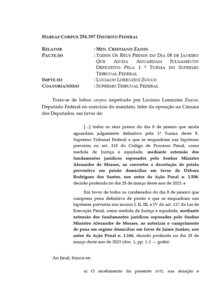 Trata-se de habeas corpus impetrado por Luciano Lorenzini Zucco,