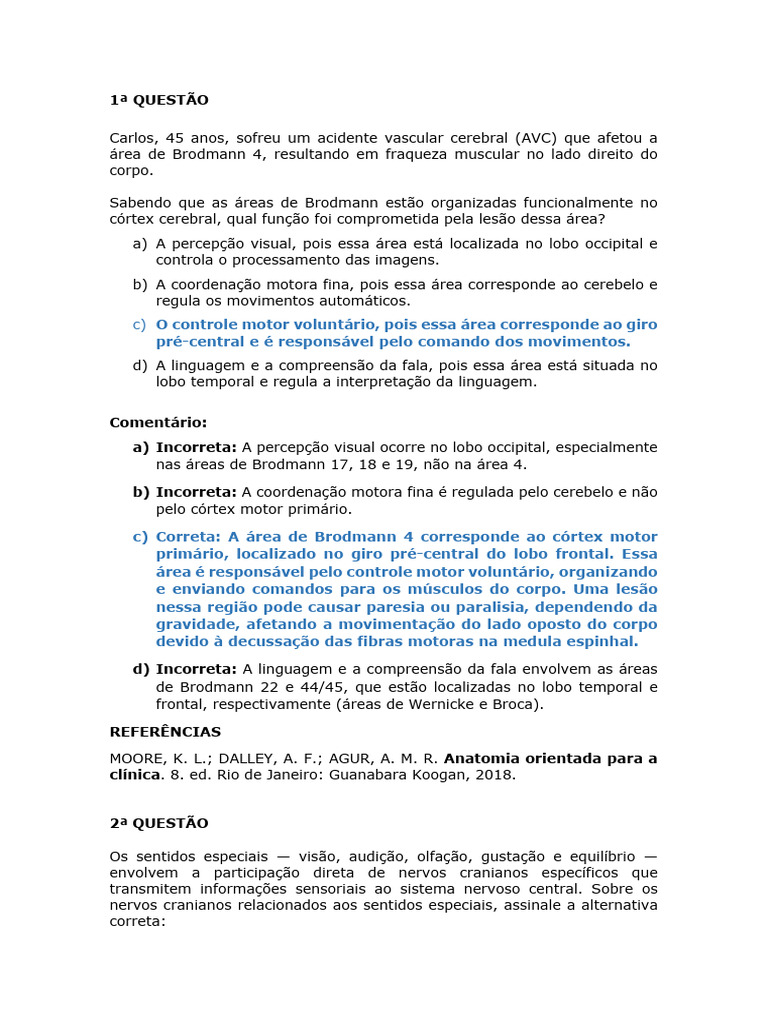 c) Correta: A área de Brodmann 4 corresponde ao córtex motor