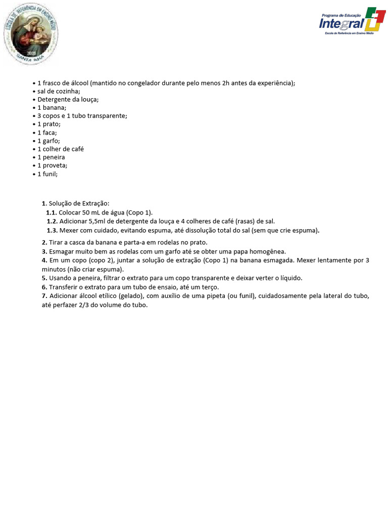 Escreva qual foi o resultado das extrações, se houve diferença entre a banana e o morango e o motivo da diferença