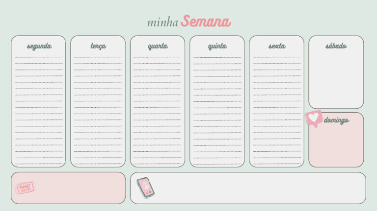 Calendário Planner Semanal Fofo Simples Rosa e Verde