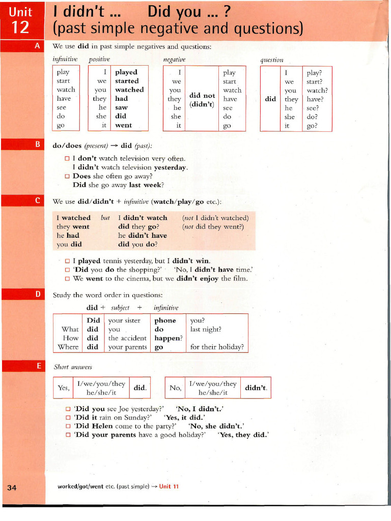 worked/got/went ete. (past simple) -* Unit 11Exercises Unit 12