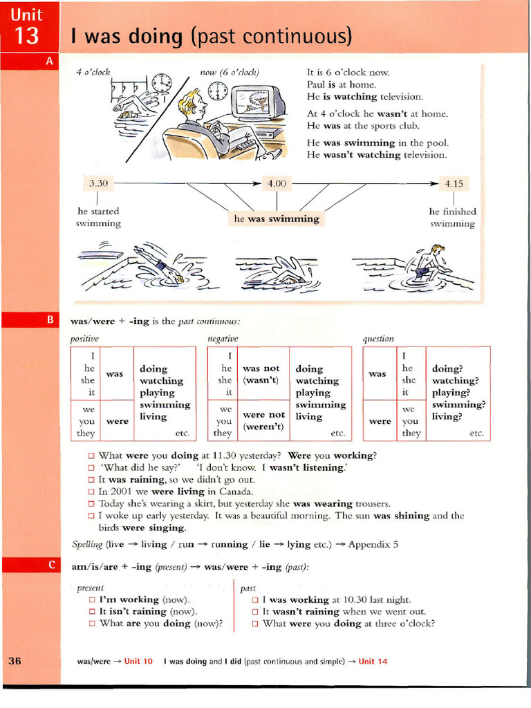 O documento discute o uso do passado contínuo em inglês, exemplificando com situações cotidianas e exercícios práticos. Ele inclui descrições de atividades realizadas em horários específicos e a formação de perguntas e respostas no passado. Além disso, apresenta exercícios para praticar a conjugação correta dos verbos no passado contínuo.