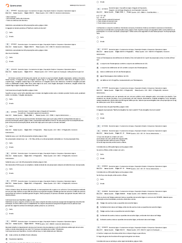 93 Q1688325 Raciocínio Lógico > Fundamentos de Lógica , Proposições Simples e Compostas e Operadores Lógicos