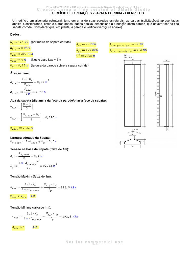 28 jul 2024 21:52:38 - 1D1 - Exercício resolvido de Sapata Corrida - Exemplo 01.sm