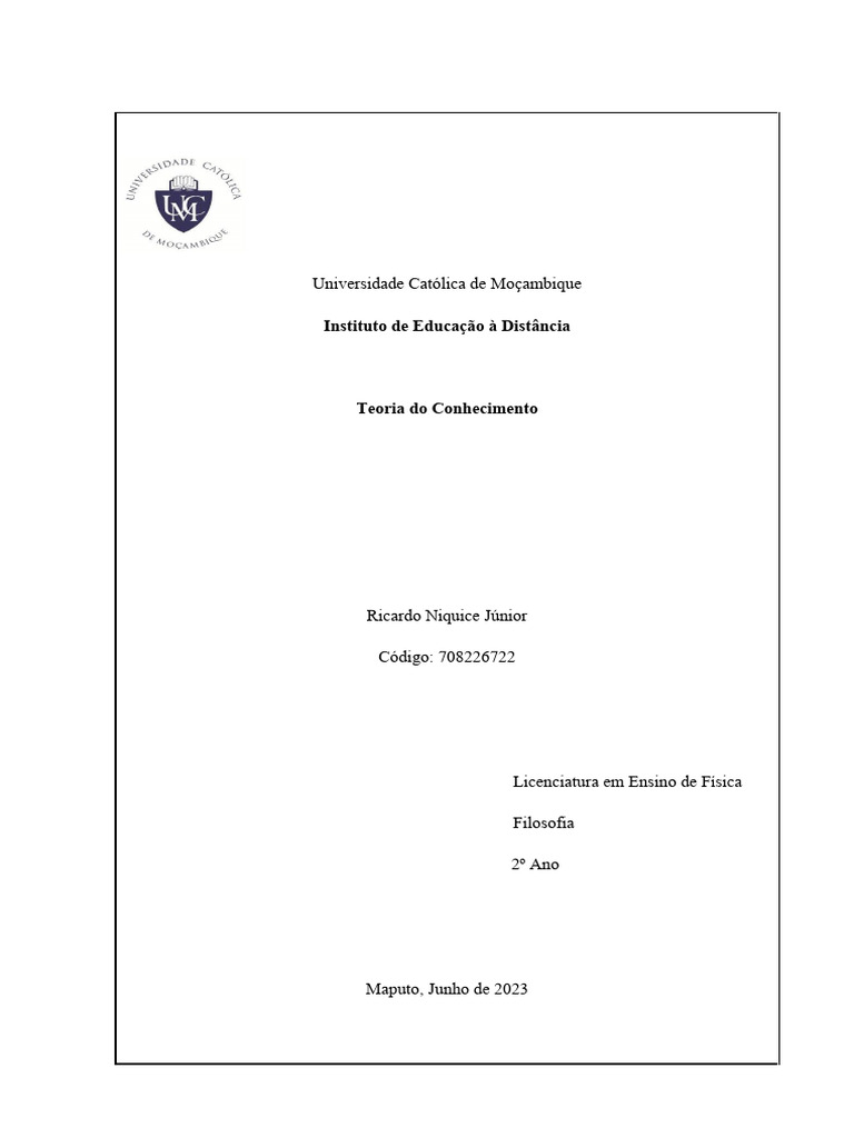 Centro de Ensino a Distancia. (s/d). Modulo de Filosofia. Beira, Moçambique.
