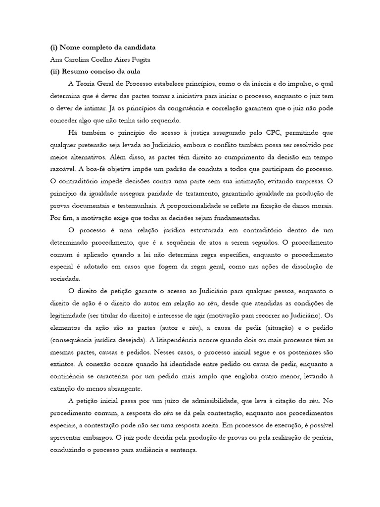 (iv) Breve percepção individual da candidata sobre o tema abordado.