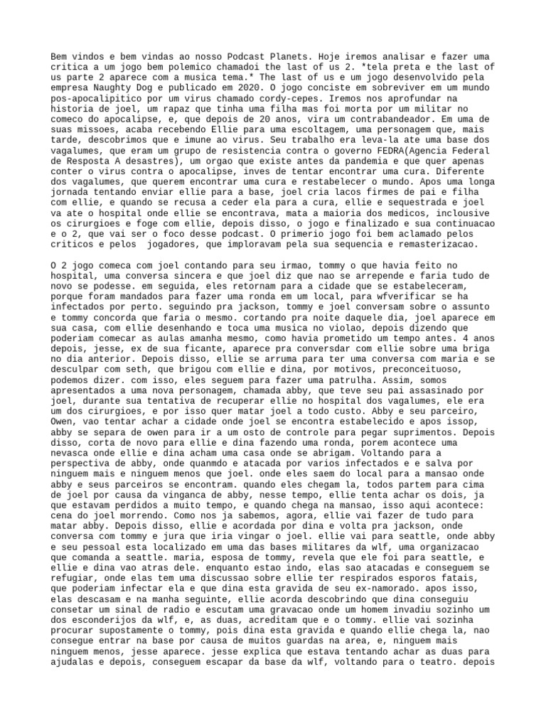 recapitular oque aconteceu e oque ira acontecer. Toda esta parte de ellie foi seus