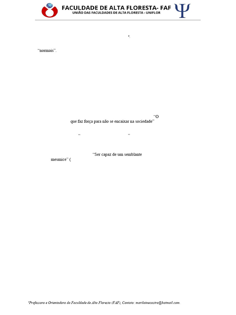 se enquadra, mas sim, o que faz força para não se encaixar na sociedade”, assim como Desidério (2003)