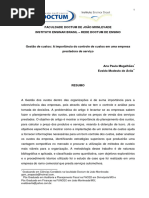 Palavras Chave: Contabilidade de custos, Gestão de custos, Redução de custos.
