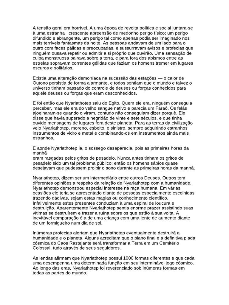destruição. Aparentemente Nyarlathotep sentia enorme prazer assistindo suas