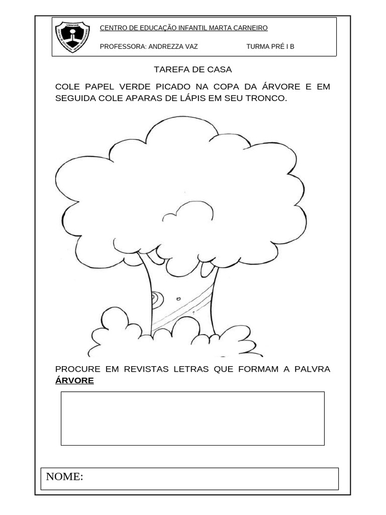 PROFESSORA: ANDREZZA VAZ TURMA PRÉ I B