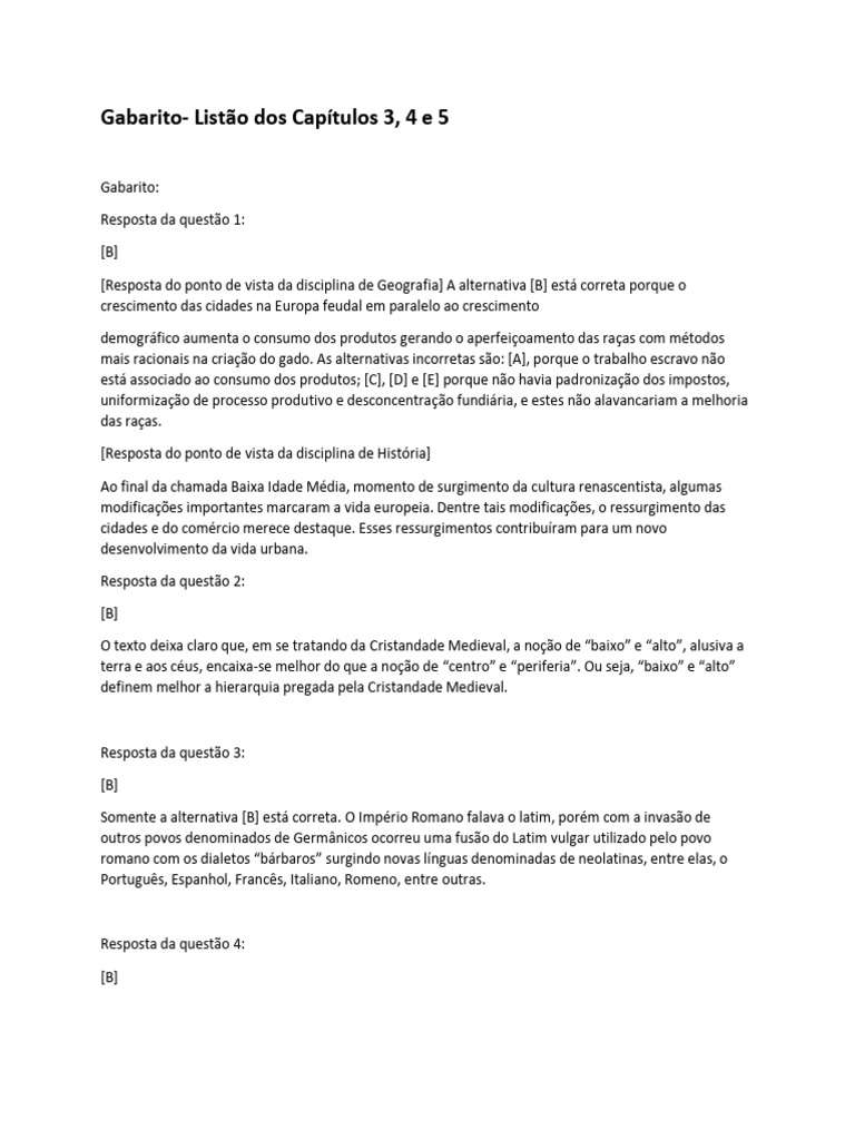 Gabarito- Listão dos Capítulos 3, 4 e 5