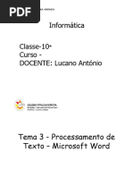 • Bem-vindo ao Word: Irá criar um documento contendo as principais informações do