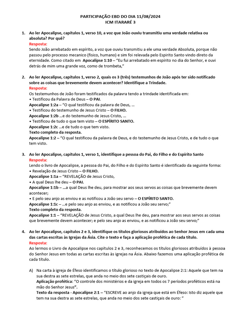 3. Ao ler Apocalipse, capítulos 1, verso 1, identifique a pessoa do Pai, do Filho e do Espírito Santo