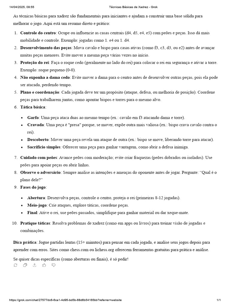 14/04/2025, 09:55 Técnicas Básicas de Xadrez - Grok