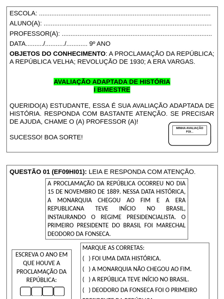 AVALIAÇÃO ADAPTADA DE HISTÓRIA