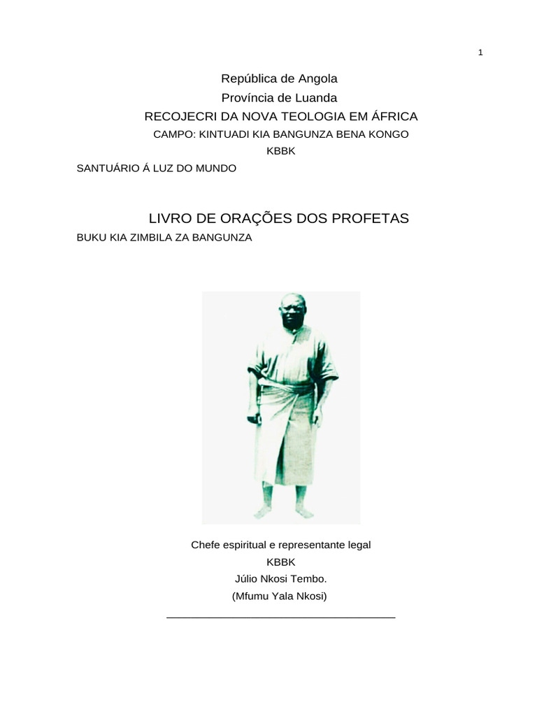 protejam o pai Júlio Nkosi Tembo Líder da União dos Profetas filhos do Kongo.
