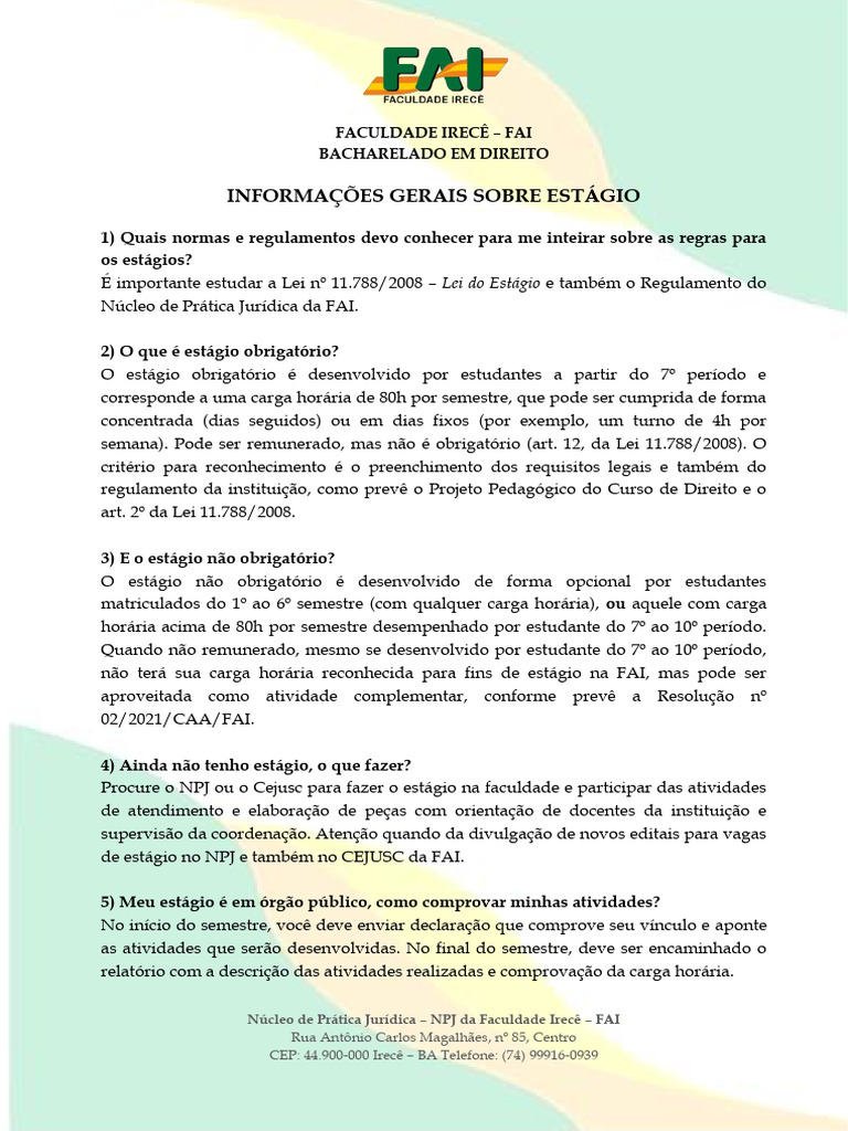 INFORMAÇÕES GERAIS SOBRE ESTÁGIO