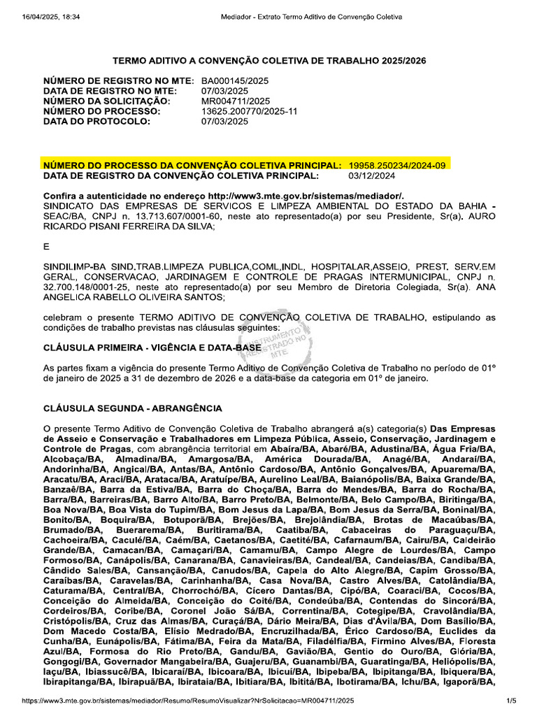 dias após a data de registro desta Convenção Coletiva de Trabalho no Ministério do Trabalho e Emprego -