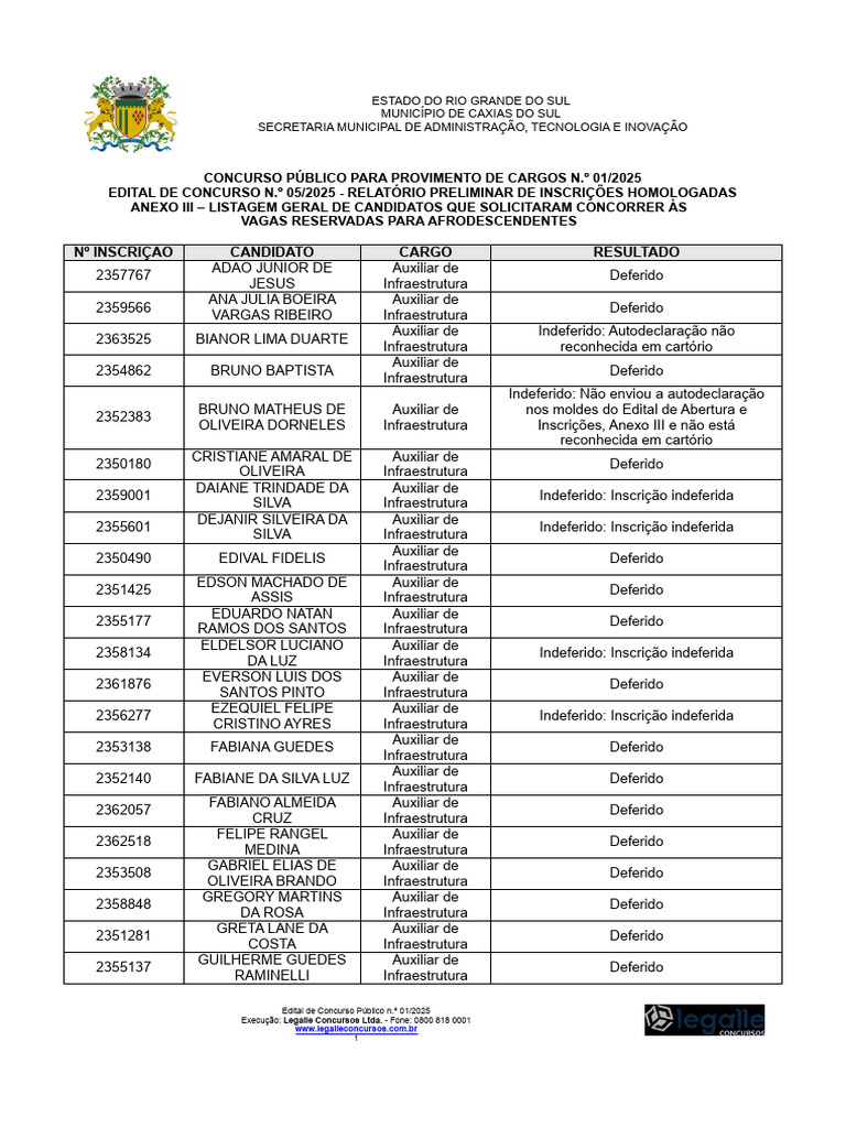 EDITAL DE CONCURSO N.º 05/2025 - RELATÓRIO PRELIMINAR DE INSCRIÇÕES HOMOLOGADAS
