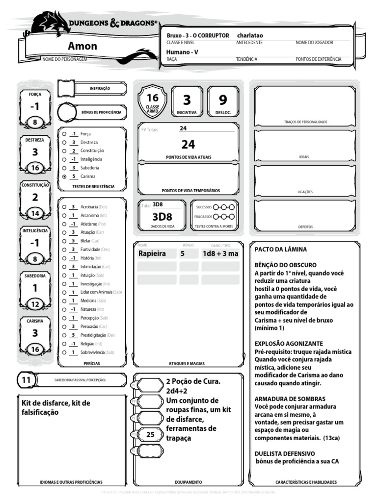 NOME DO PERSONAGEM RAÇA TENDÊNCIA PONTOS DE EXPERIÊNCIA