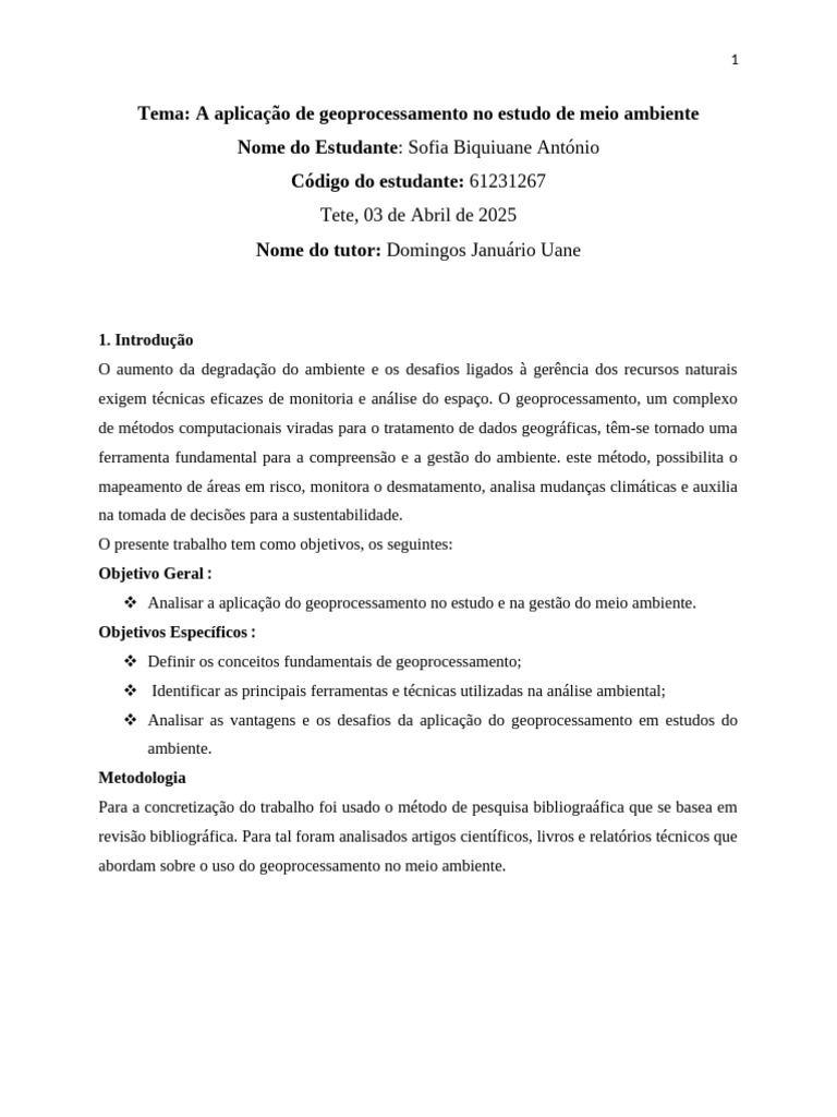 Tema: A aplicação de geoprocessamento no estudo de meio ambiente