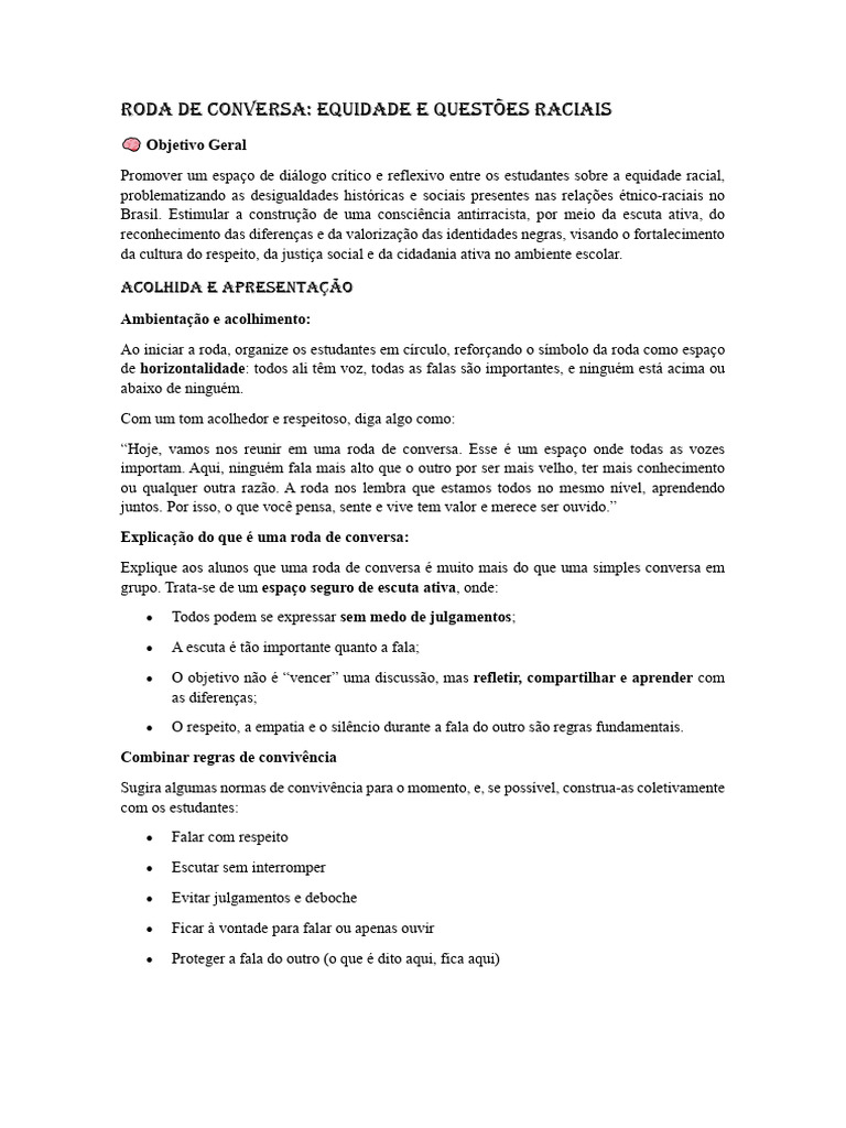 Brasil. Estimular a construção de uma consciência antirracista, por meio da escuta ativa, do