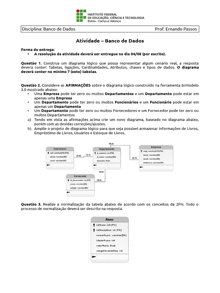 • A resolução da atividade deverá ser entregue no dia 04/08 (por escrito).