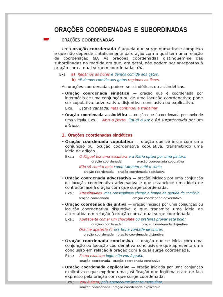 de coordenação (a). As orações coordenadas distinguem-se das