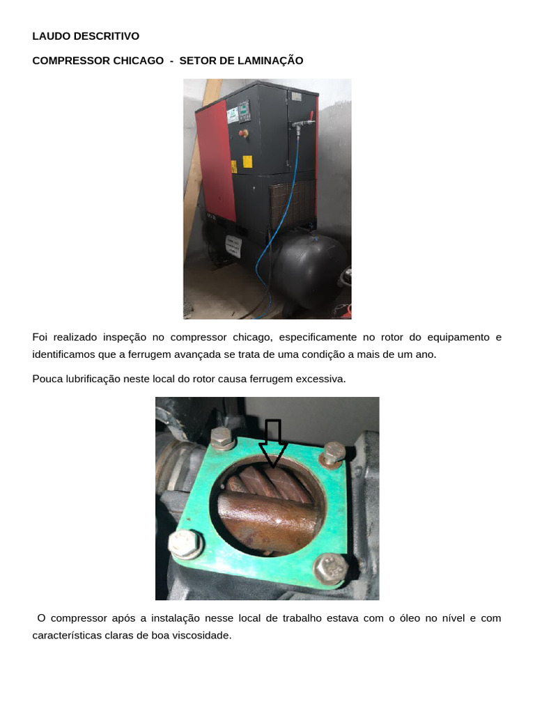 Foi realizado inspeção no compressor chicago, especificamente no rotor do equipamento e
