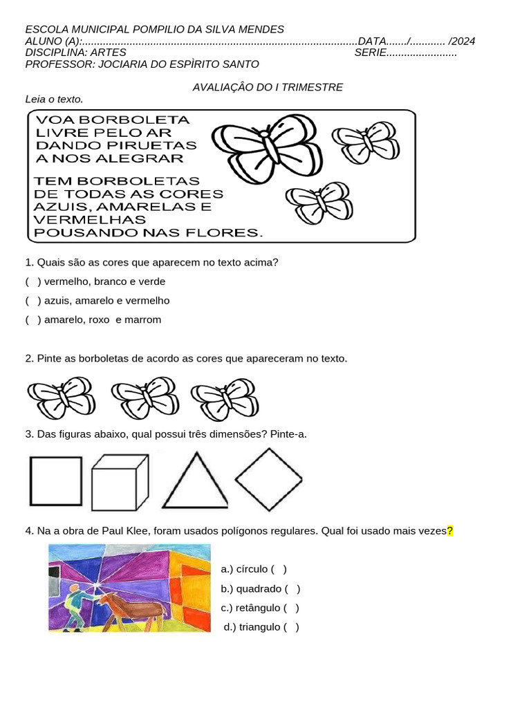 2. Pinte as borboletas de acordo as cores que apareceram no texto.