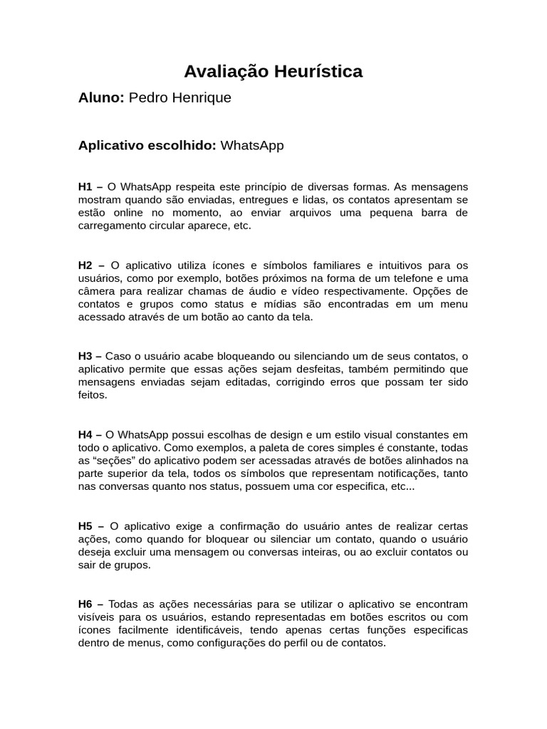 H1 – O WhatsApp respeita este princípio de diversas formas. As mensagens