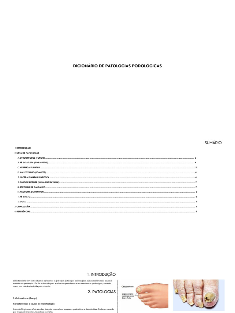 Este dicionário tem como objetivo apresentar as principais patologias podológicas, suas características, causas e