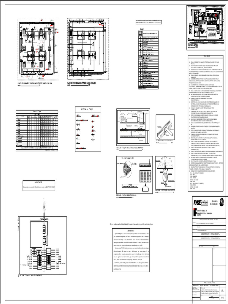 PLANTA DE ILUMINAÇÃO E TOMADAS LABORATÓRIO DE QUÍMICA E BIOLOGIA PLANTA DE MONTAGEM LABORATÓRIO DE QUÍMICA E BIOLOGIA PROTEÇÃO MECÂNICA DOS CABOS;