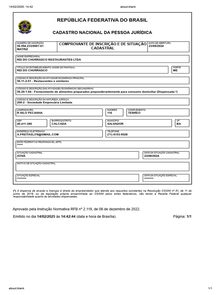 Emitido no dia 14/02/2025 às [Link] (data e hora de Brasília). Página: 1/1